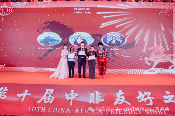 装备制造领域:中非友好国际贸易有限公司与青岛迪乐普精密机械有限公司签署合作协议,推动中国高端装备走进非洲市场。 四、荣耀盛典:星光熠熠,共叙中非友好情 1. 荣誉加冕:致敬卓越贡献者 激动人心的颁奖环节将现场气氛推向高潮。
